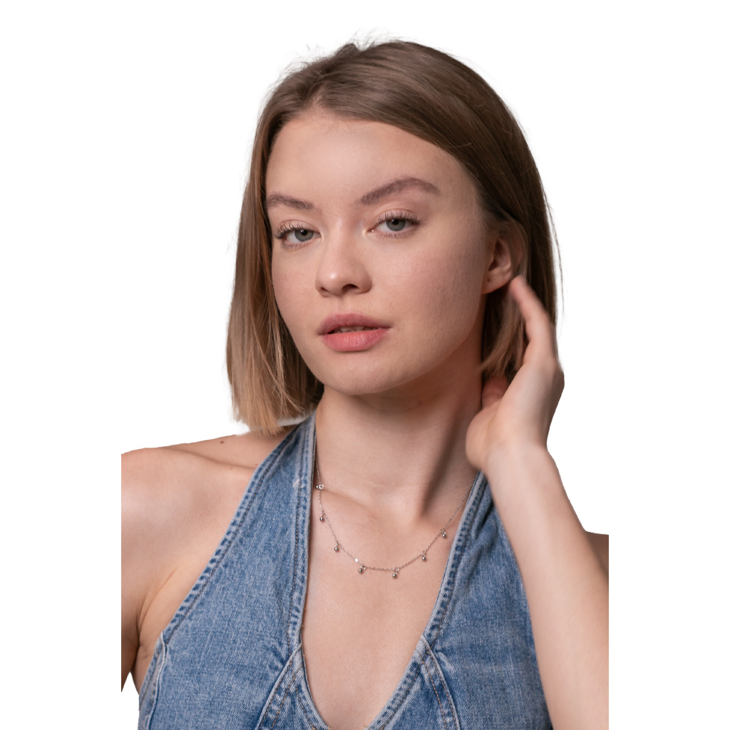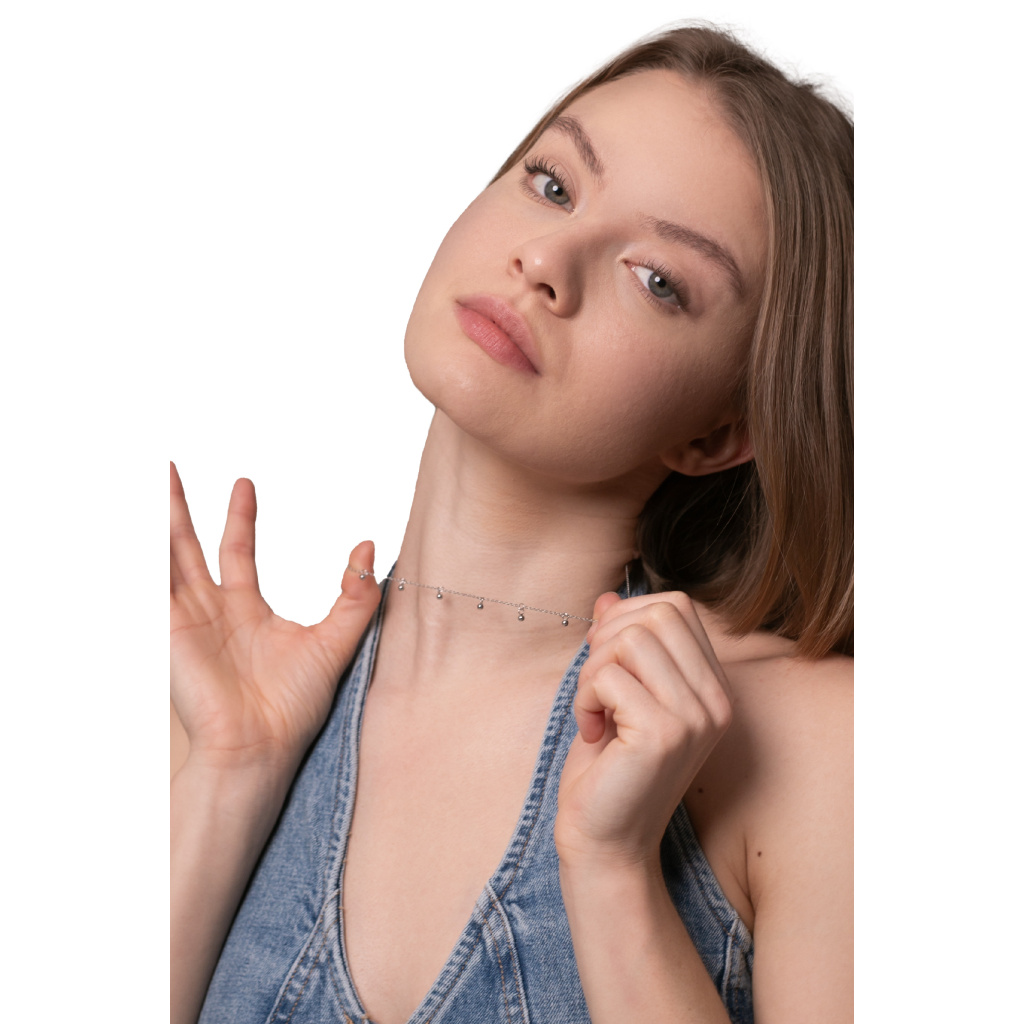Jemný náhrdelník se 7 kuličkami - stříbrný