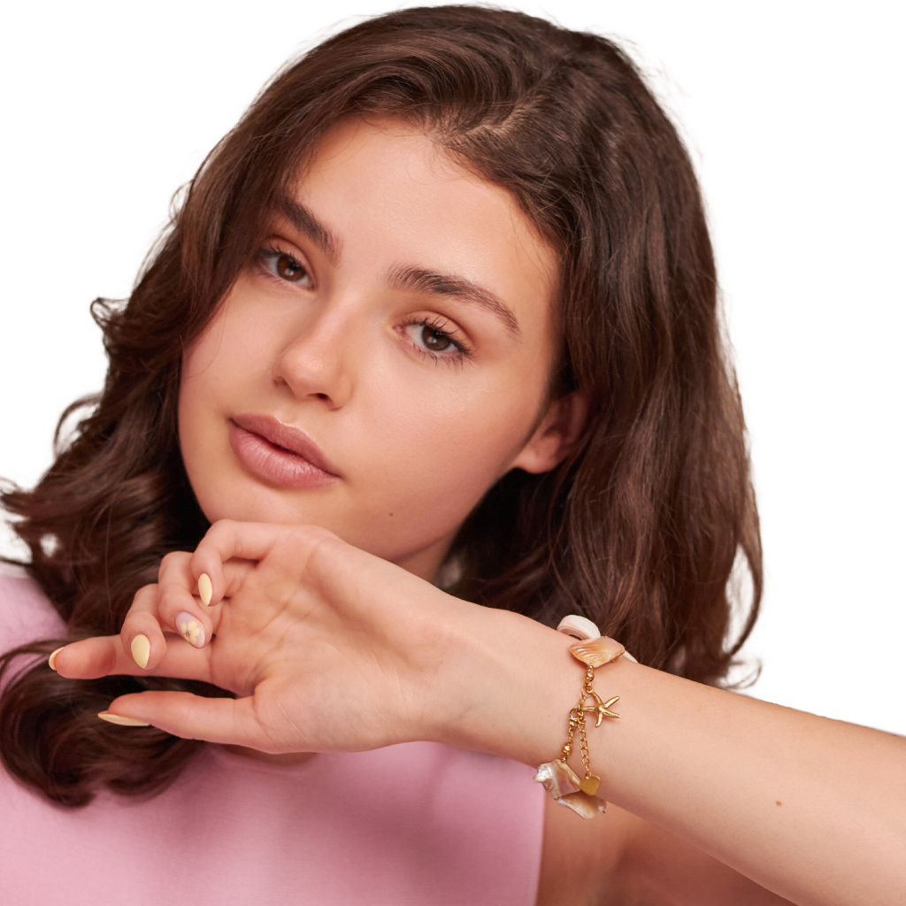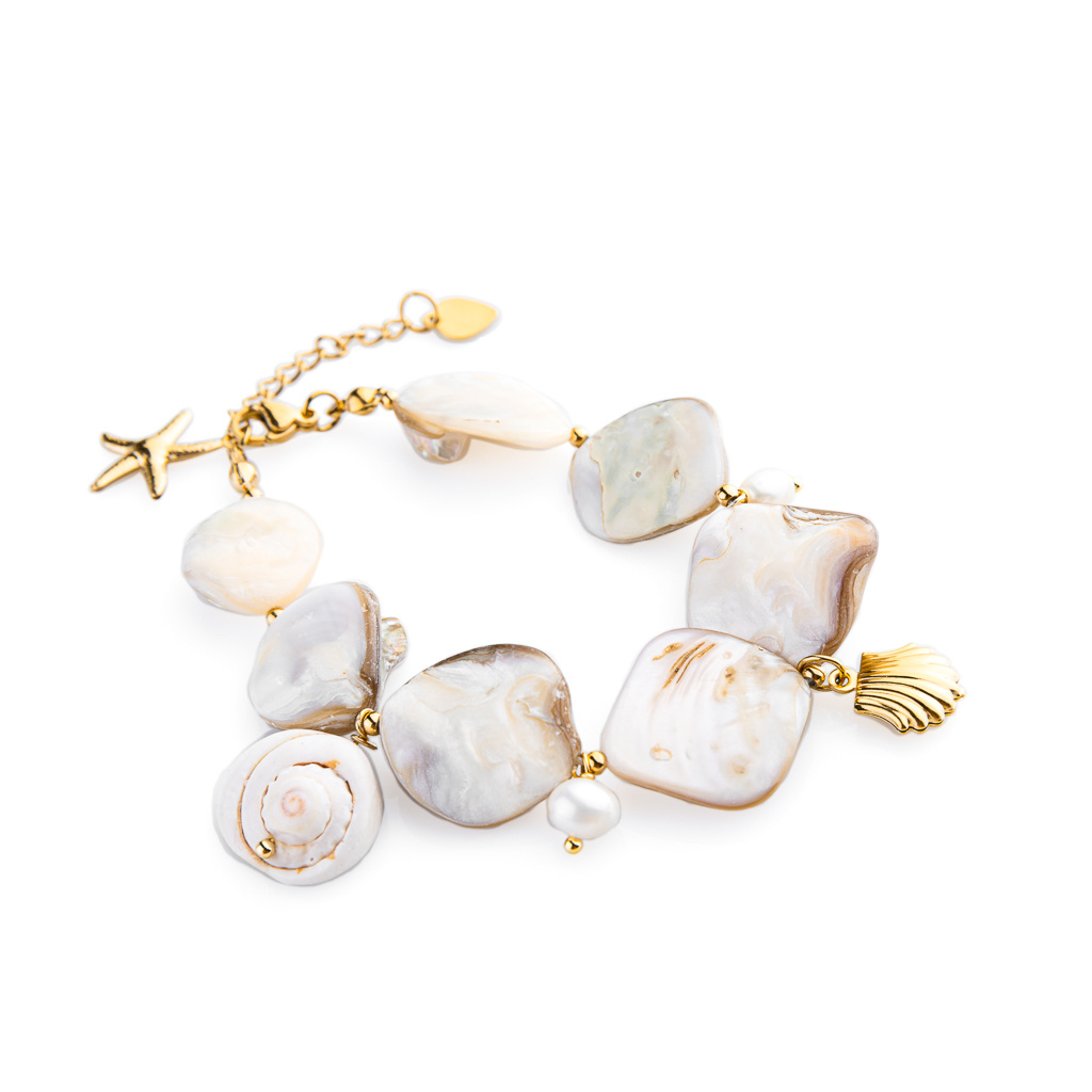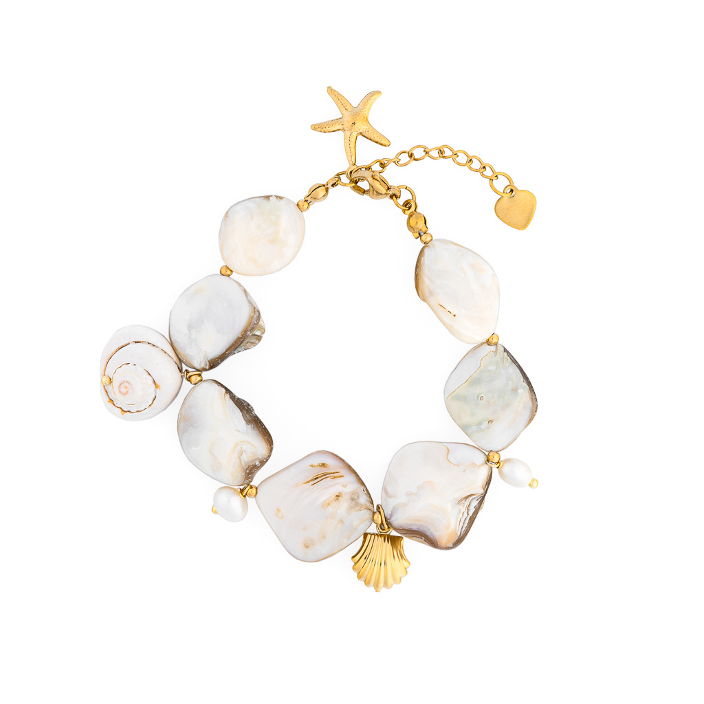 Mušličkový náramek s přívěskem mušle - pozlacený