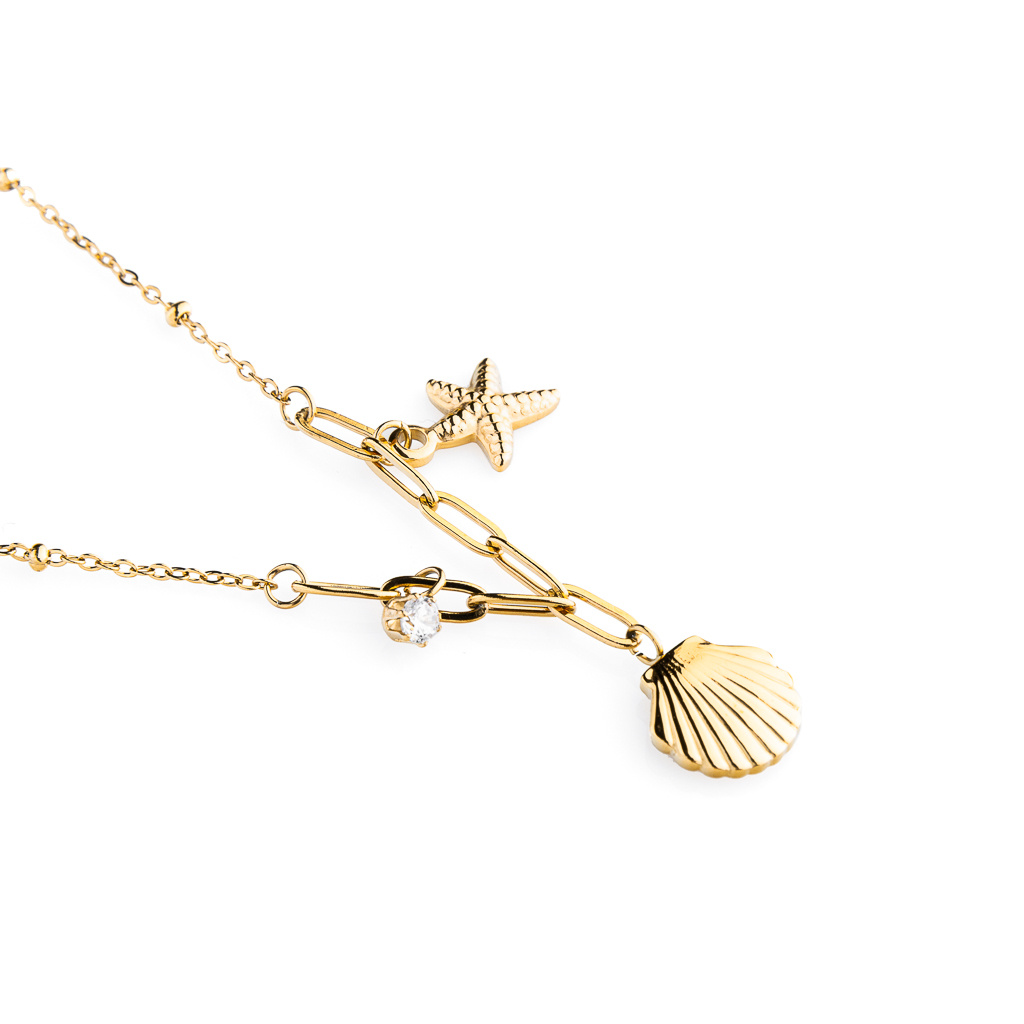 Náhrdelník s mušlí a přívěsky - pozlacený