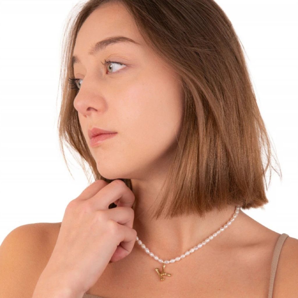 Perličkový náhrdelník s písmenem - pozlacený