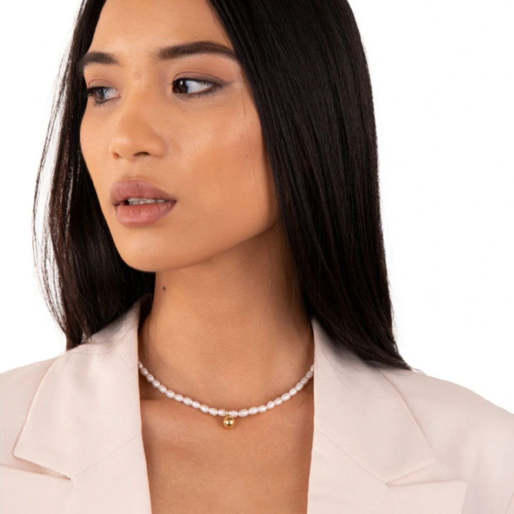 Perličkový náhrdelník s pozlacenou kuličkou