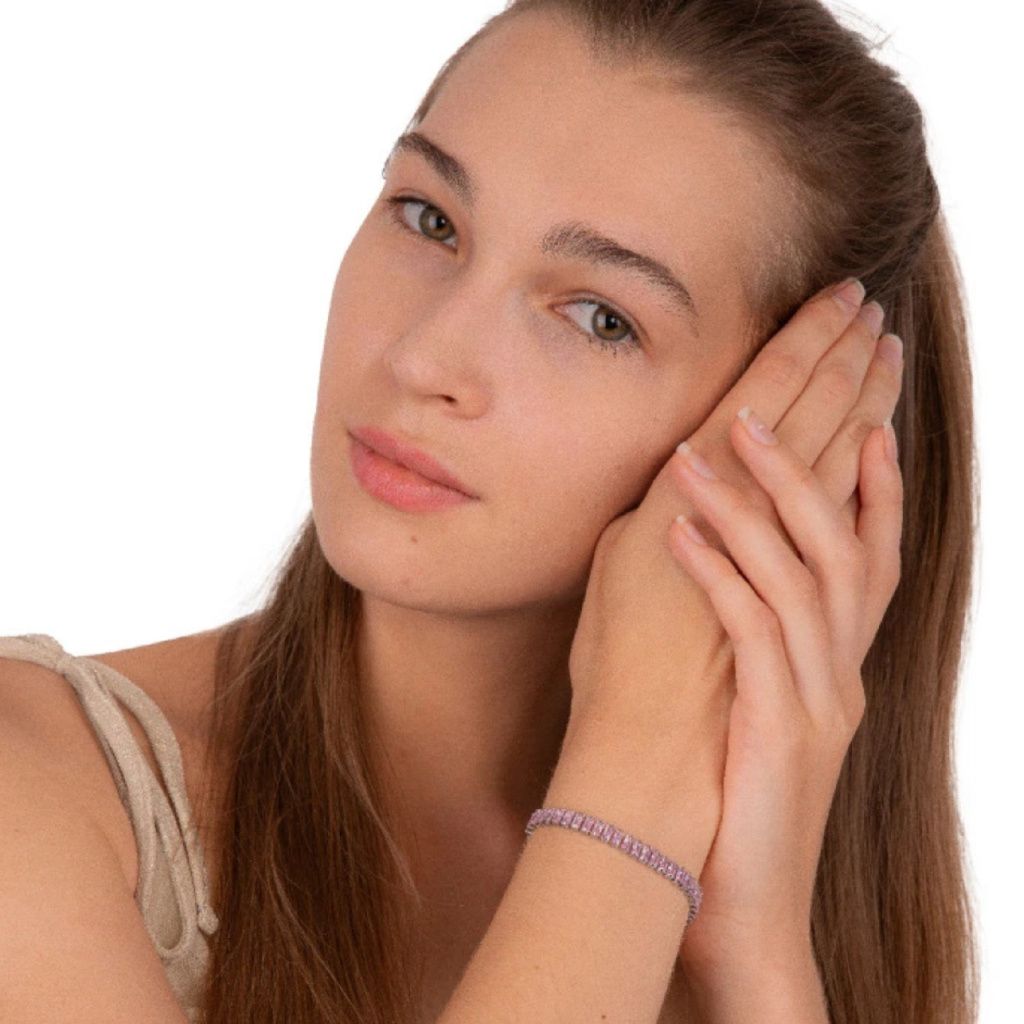 Stříbrný Crystal náramek - růžový