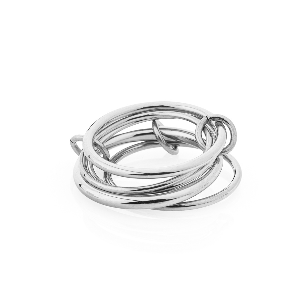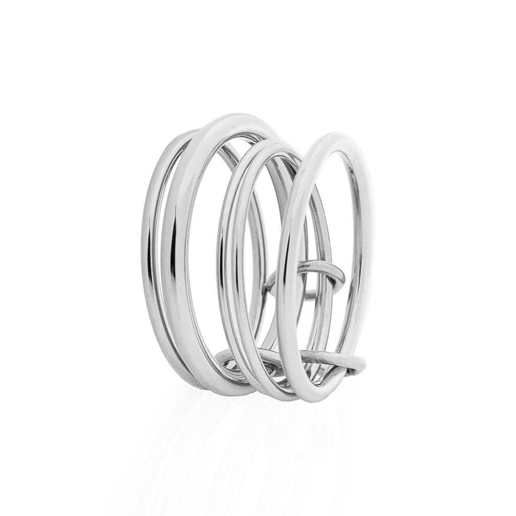 Vrstvený prsten – stříbrný je trendy kousek tvořený pěti propojenými prstýnky s hladkým povrchem.